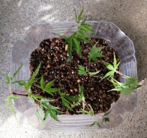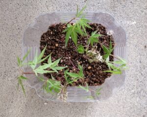 長良川もみじ等が入った挿し穂はまだ元気そう。1本しなっとしてしまい抜きましたが。